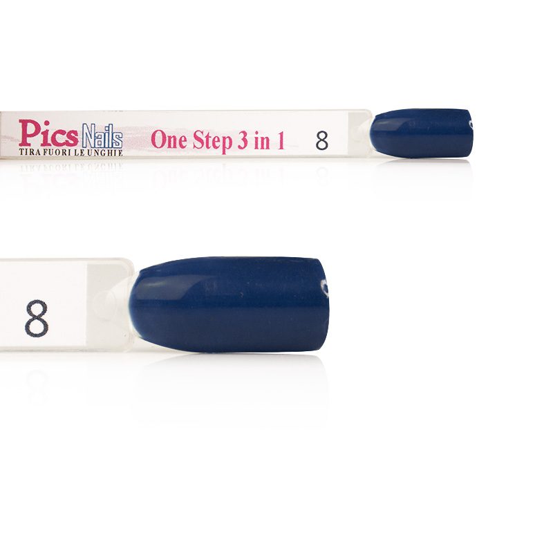 The ONE STEP Gel Polish 3 in 1 Pics Nails, presents itself in a convenient bottle of 8ml with the attached brush, its special formulation makes it very easy to apply as one of its main features is its fluidity. We remember You that the bottles present themselves in a dark colour because they must be perfectly sealed from the outside because even the ONE STEP Gel Polish 3 in 1 Pics Nails is a product photo-curing, it means that for drying or catalysing, it requires the exposure to ultraviolet rays especially of 3 minutes within a lamp of 36 W or at least 150 second (1 min and medium) in an LED lamp of at least 6/10 W.
