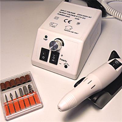Professional Nail Drill for Nails Extension from 0 to 14,000 revolutions per minute. Speed is adjustable with potentiometer and key rotation reversal in the particular dashboard. The convenient Kit of 5 bits in steel includes a mandrel with 3 abrasive cylinders included in the package, which give certainty to be able to operate from the outset (widely used in the milling and patterning of UV Gel during Nails Extension makings and precisely in order to give the right shape or for the removal of the gel or acrylic). This Nail Drill is a professional tool of design that fits perfectly to every furniture. The Nail Drill can be used also during the Manicure or Pedicure procedures using the same bits which are included in the package or using other bits which are sold separately, also because the attack in the handle is practically compatible with most of the bits that are present in trade. This Nail Drill for Nails Extension allows, thanks to its speed of rotation, to be able to drastically destroy the times of the Nail making in order to be able to have an economic return immediately. This Electric Nail File is suggested for all those people who practice Nails Extension or practices of manicure or pedicure both in a professional or hobby way and for those who need a good quality equipment. The handle that there is in the box is equipped with a convenient switch useful to be able to do work breaks without intervening on the dashboard of the main block of the Nail Drill. Package Contents: Table Control and Power Base, Adapter with electrical outlet, milling handpiece, a kit composed of 4 Milling Bits, a Mandrel Bit to support the abrasive cylinders, N°. 3 Specific abrasive Cylinder of 3 different roughnesses, N°. 1 Specific support for Nail Drill handle. The BEST PRODUCT WITH VALUE FOR MONEY.