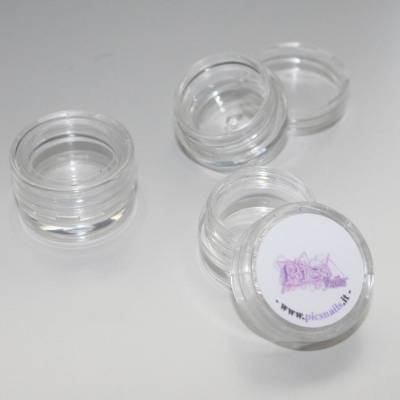 Transparent Plastic Jar 5 gr can be used to contain: Glitter Nail Dust, Rhinestones and all the smallest decorations for Nails. It can be open and closed thanks to a clockwise movement. The jar is very resistant to falls or hits, guaranteeing the integrity of the product itself.